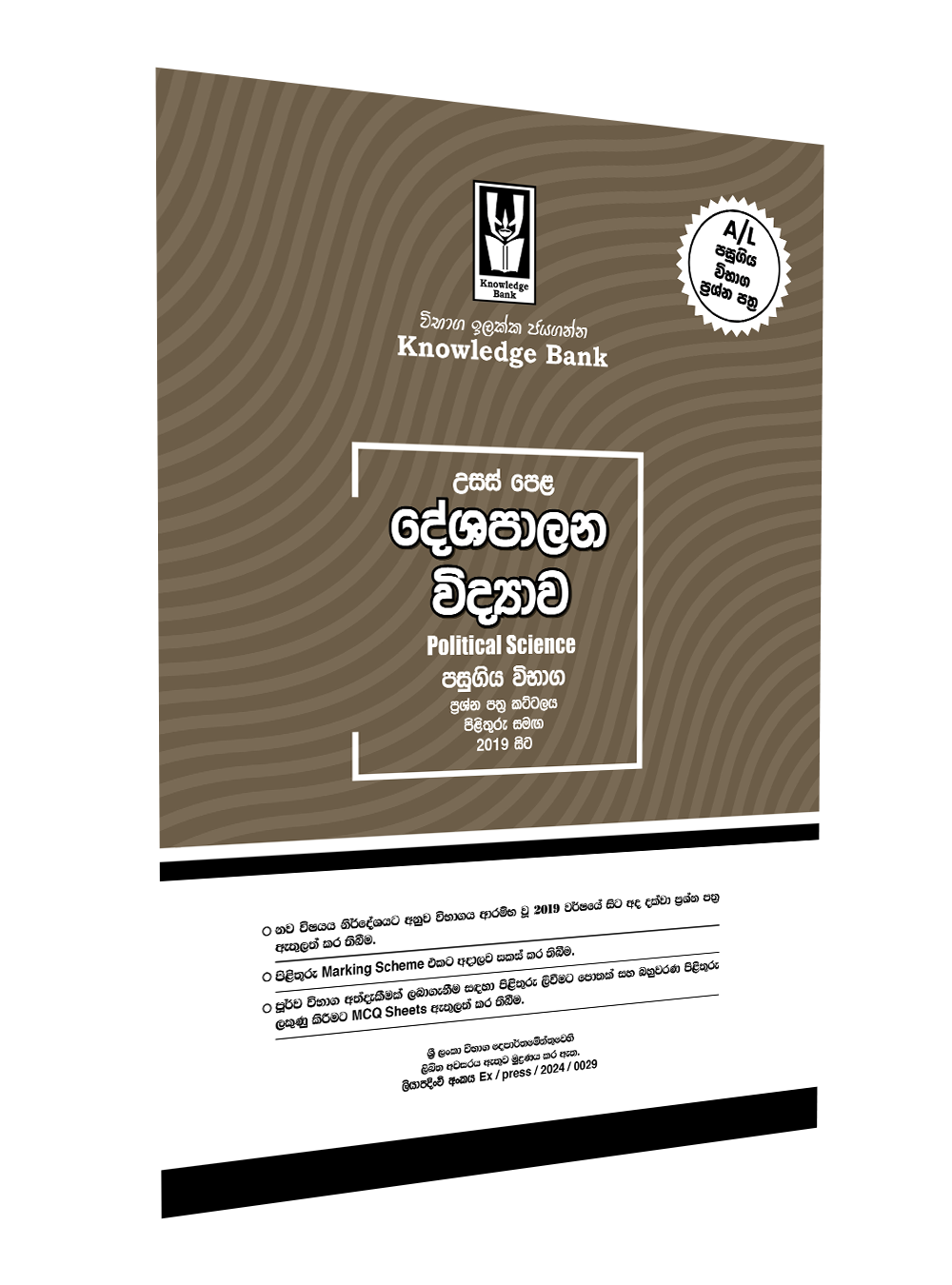 සියලුම ප්‍රශ්න පත්‍ර වෙන වෙනම විභාගයේදී ලැබෙන පරිදි මුද්‍රණය කර ඇත.