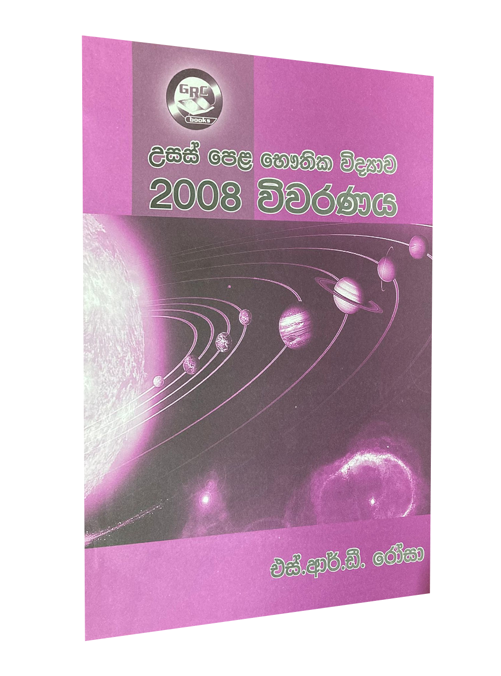 මෙම විශේෂිත විවරණ ග්රන්ථය අ.පො.ස. උසස් පෙළ භෞතික විද්යාව – 2008 ප්රශ්න පත්රය සම්පූර්ණයෙන්ම ආවරණය කර ඇත.